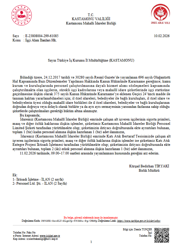İşçi Alım İlanları Hk.
